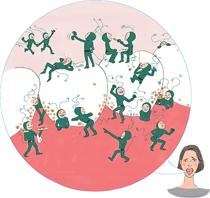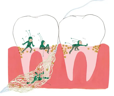 歯ぐきの中に残された細菌は、仲間を集めてどんどん増えていきます。