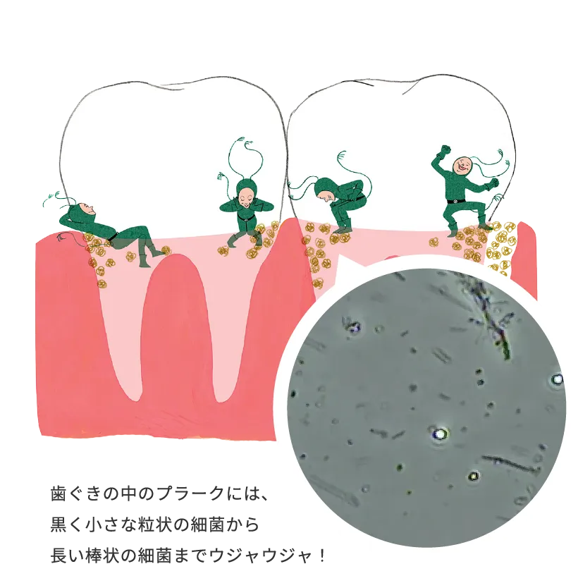 種類は複数ありますが、どれも酸素が苦手。酸素が届かない“歯ぐきの中”に住みつきます。